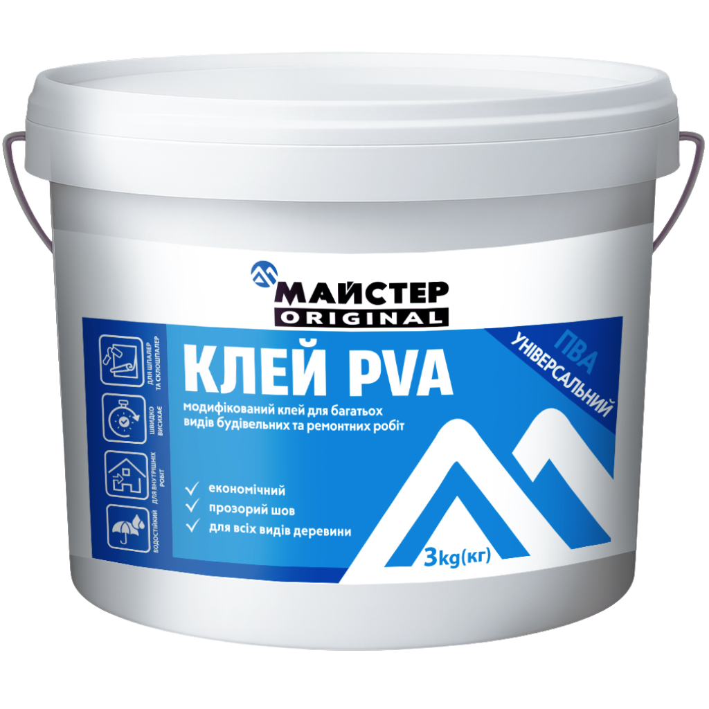 Модифікований клей на основі водної дисперсії вінілацетатного полімера для внутрішніх робіт. Призначений для приклеювання шпалер та склошпалер, склеювання паперу, картону, дерева, шкіри, поролону та тканин; а також для додавання в якості пластифікуючої домішки в цементні розчини (штукатурку, стяжку тощо) та бетон.